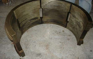 Soldadura o desprendimiento del metal de la cubierta en la parte trasera del cojinete , caras de unión. Producción de una línea delgada de oxido causa proliferación de falla por fatiga.